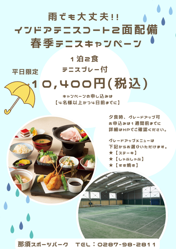 【テニス愛好家の皆さまへ】春の不順な天気でも、梅雨でも大丈夫!